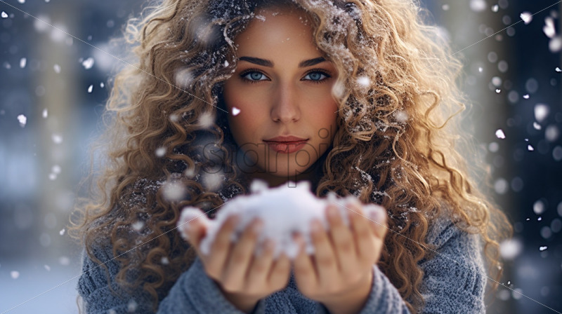 Woman enjoying winter time snow