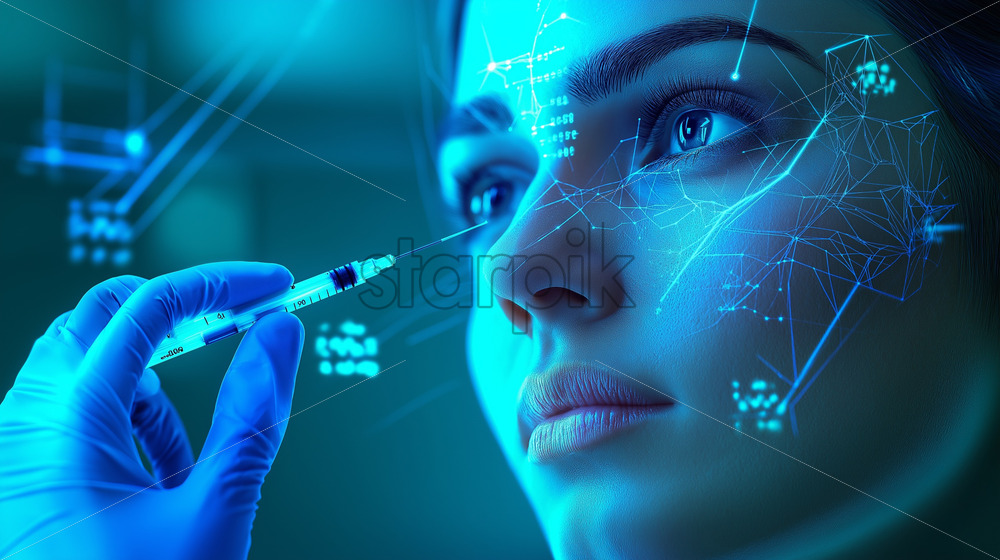 woman in a clinic having injections procedures with fillers in her face