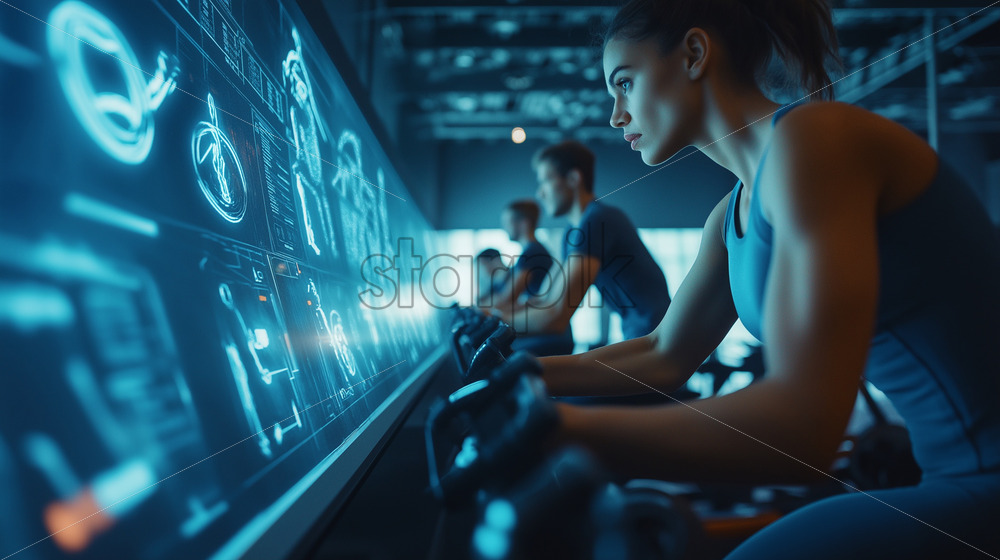 woman in a high-tech gym powered entirely by kinetic energy