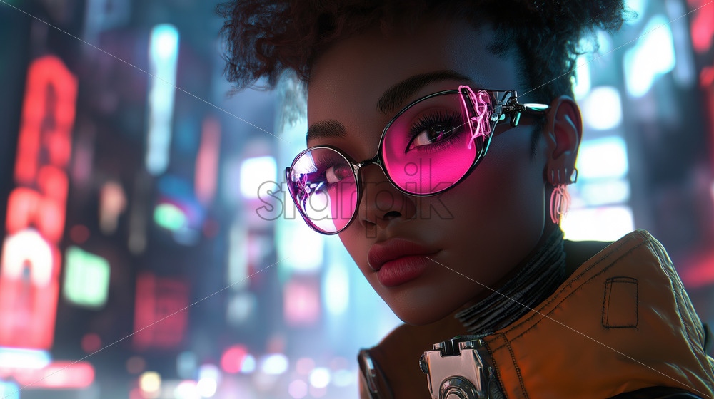 Home » Shop » AI Illustration » woman in a quantum tech city