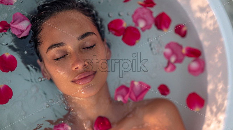 Home » Shop » Uncategorised » Woman in a spa jacuzzi with petal roses bath relaxing