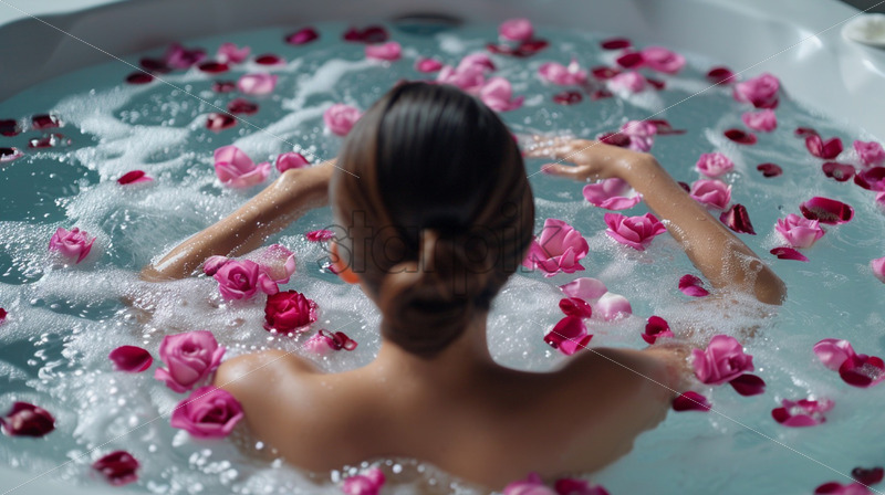 Home » Shop » Uncategorised » Woman in a spa jacuzzi with petal roses bath relaxing
