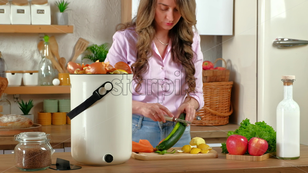 Woman peeling vegetables and recycling organic waste in the kitchen Royalty Free Stock Video Footage Royalty Free Stock Video Footage