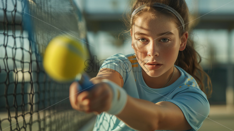 Woman and a man playing pickleball. Outdoor court. Slow motion Royalty Free Stock Video Footage