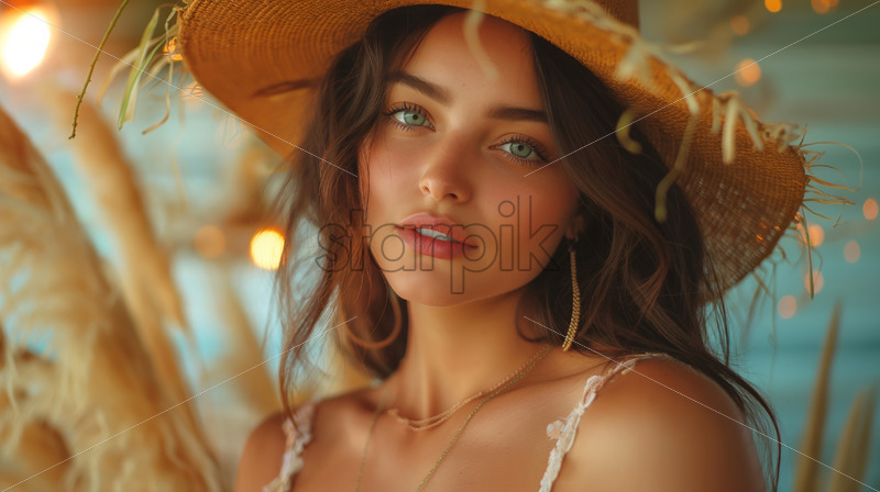 Woman portrait in a boho style hat