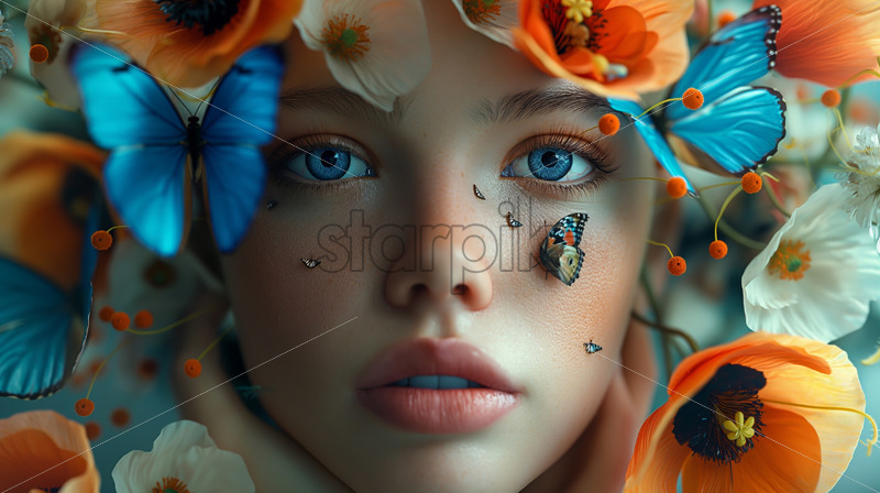 Home » Shop » AI Illustration » Woman portrait with flowers and butterflies spring summer season