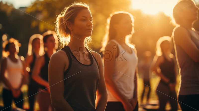 Woman with overweight in gray t-shirt and leggings exercising on a sports field in a park while wearing a virtual reality headset. Fitness lifestyle