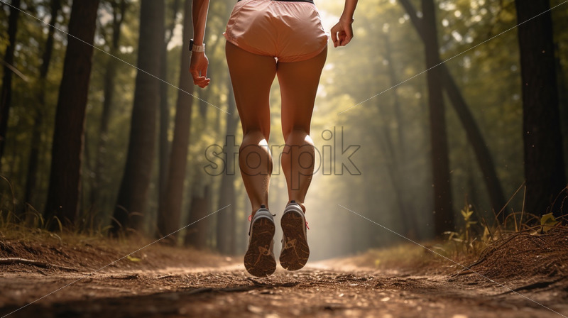 Woman running practicing sport outdoors in a forest nature