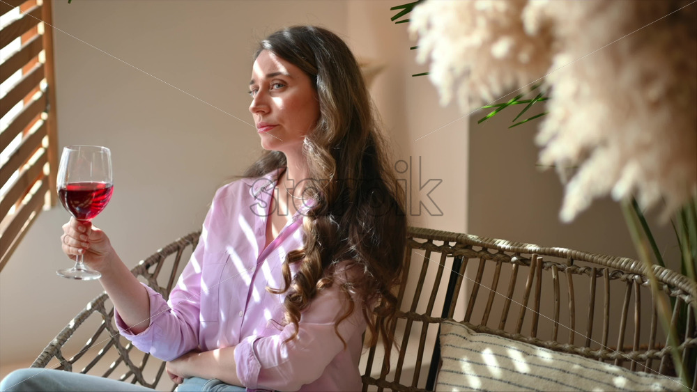 Woman savouring a glass of red wine in daylight Royalty Free Stock Video Footage Royalty Free Stock Video Footage