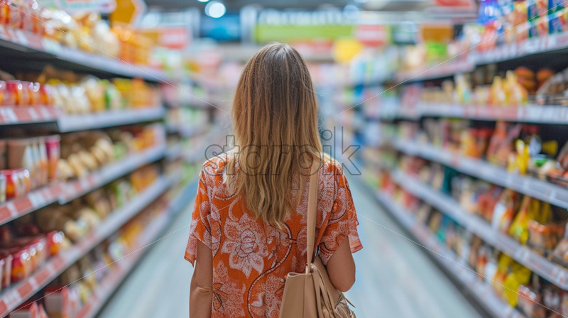 Woman picking bell peppers in a reusable bag in a store. Ecology and Earth Day thematics