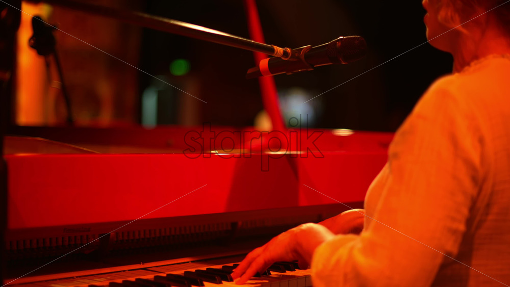 Home » Shop » 1 Video » Video – Woman singing into the microphone and playing a red piano