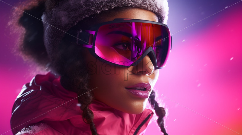 Dynamic action shot, where the ski instructor, surrounded by snow-covered slopes, exudes both joy and skill in the great outdoors.