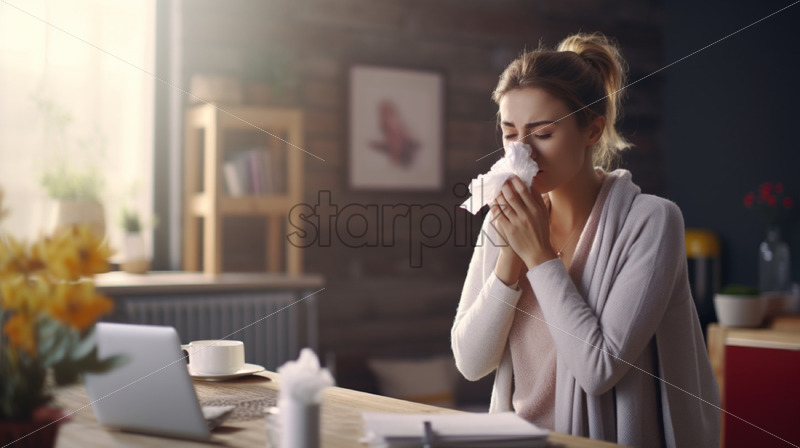 A young caucasian woman placing patches under her eyes, looking into the camera