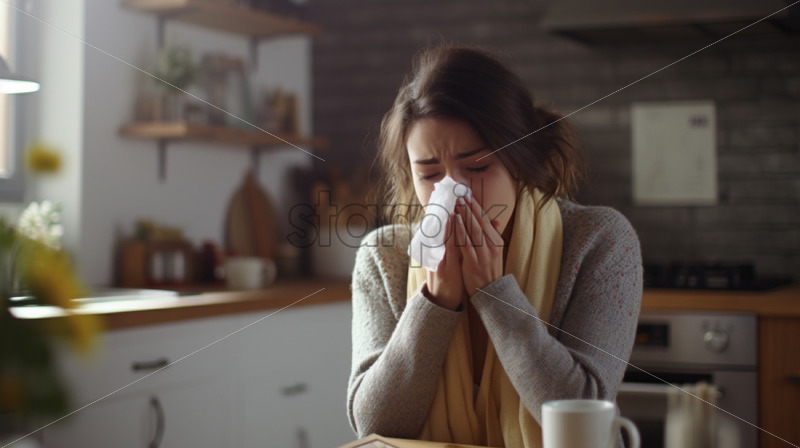 A young caucasian woman is doing a facial massage using a roller, looking into the camera