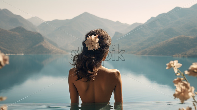 Home » Shop » Uncategorised » Woman swimming in the pool with mountains view