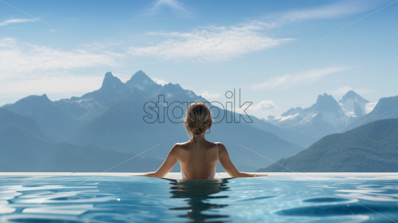 Home » Shop » Uncategorised » Woman swimming in the pool with mountains view