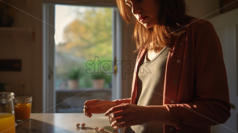 Woman hands squeezing toothpaste on bamboo. Wearing pink knitted sweater Royalty Free Stock photo