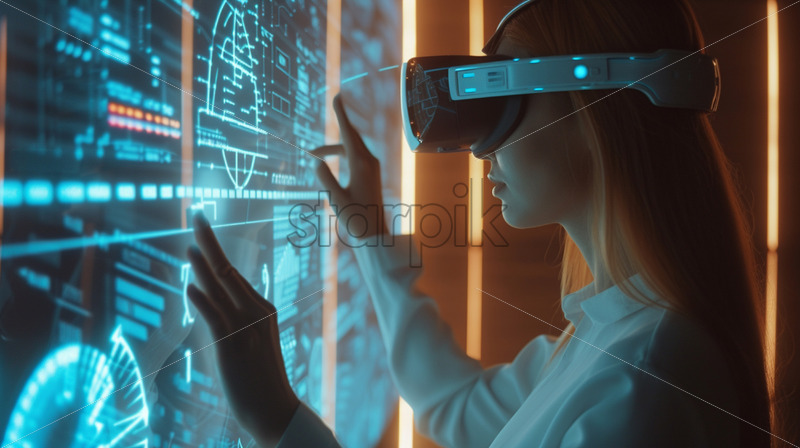 Business conference in VR in an office. A black man and caucasian woman using VR glasses and controllers, papers and gadgets on the table, virtual reality Royalty Free Stock Video Footage
