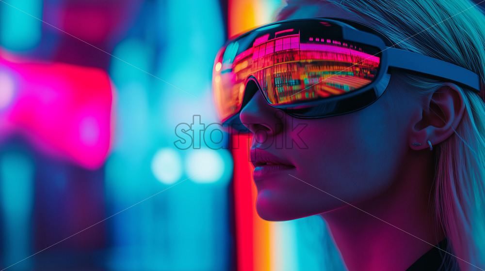Home » Shop » AI Illustration » woman wearing futuristic VR glasses