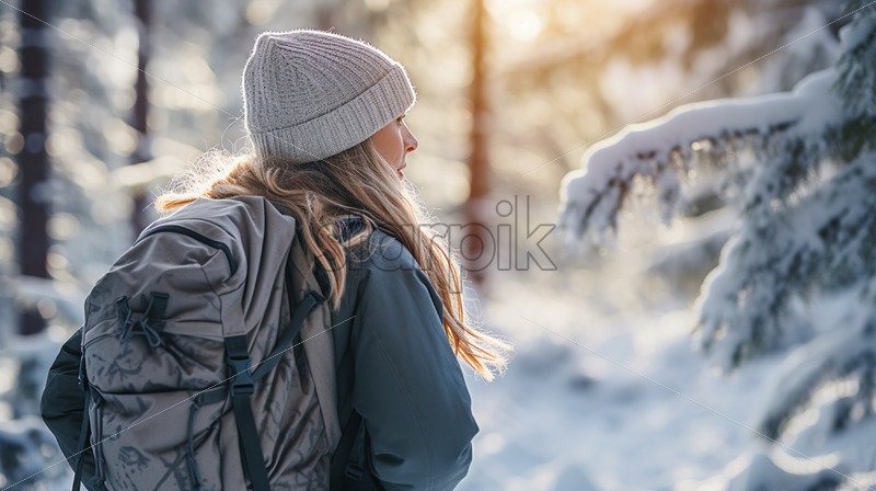 Woman with a backpack hiking in the mountains