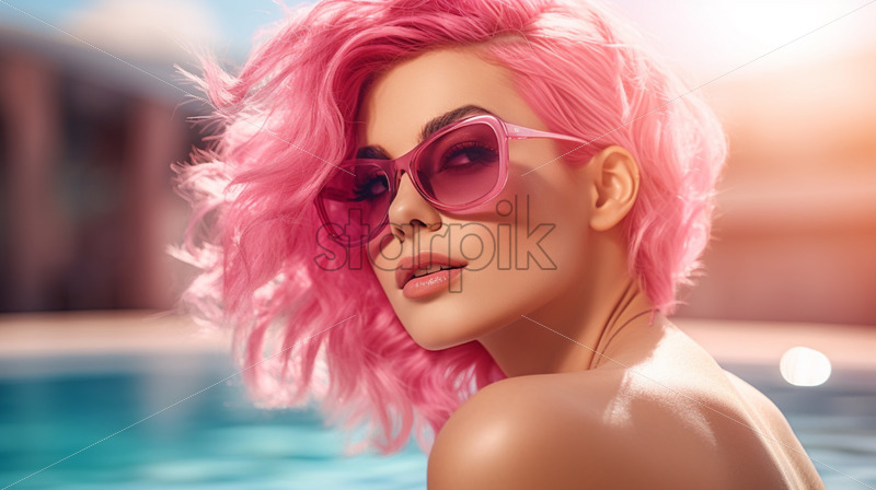Woman with pink hair and sunglasses portrait