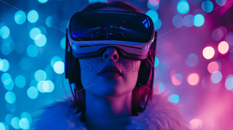 Woman with VR glasses neon lights