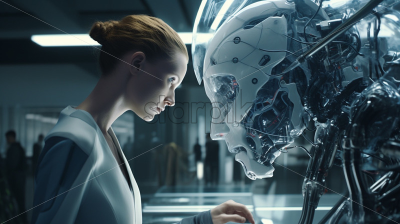 Home » Shop » Uncategorised » Woman working on a robot face future laboratory