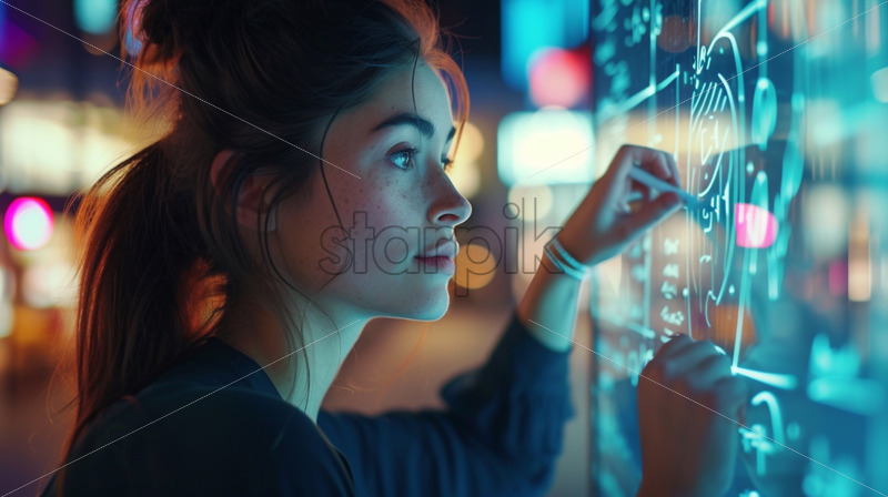 A determined technology startup entrepreneur, working on a laptop in a modern co-working space surrounded by the Rocky Mountains.