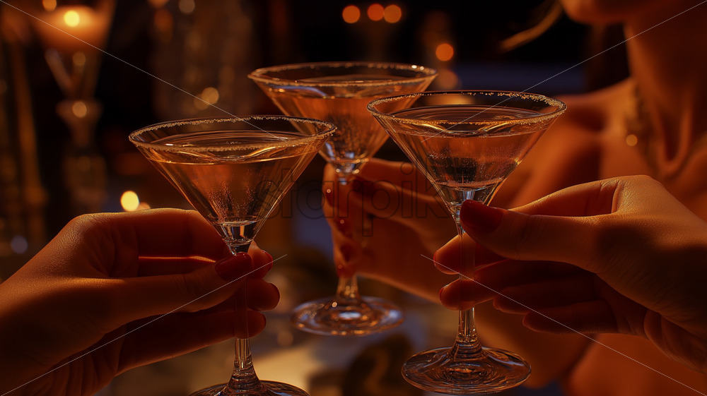 group of friends at a terrace garden in the evening having a conversation and drinking wine