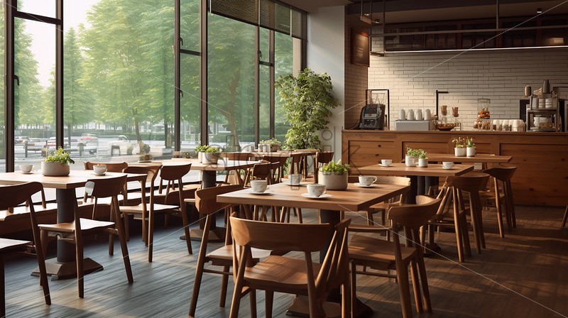 Vintage Cafe architecture in the city in a classy rustic theme classy counter and a clear glass wall with counter chair with rustic vibes and indoor plants