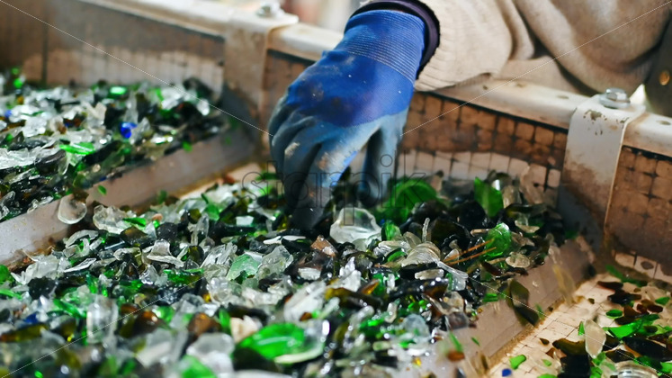 Boy and girl in rubber gloves, container at plastic garbage collection in a polluted clearing, recycling signs on the T-shirts. Slow motion Royalty Free Stock Video Footage
