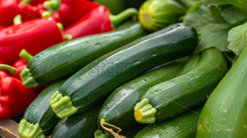 Zucchini on a table with fresh vegetables